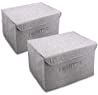 Foldable Storage Boxes with Lids, 2 Pack Linen Fabric Large Storage Bins Baskets Containers Organizers with Handles for Bedroom Home Office Closet Toys Clothes Books(Grey)
