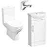 Bathroom Cloakroom Suite 420mm Gloss White 1 Door Vanity Unit Sink Basin, Tap & Toilet with Soft Close Seat