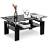 Leisure Zone Tempered Glass Chrome Living Room Coffee Table, Black Modern Rectangle Tea Table with Lower Shelf Wooden Legs, Size:L 100 X W 60 X H 45 cm