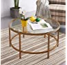 PALDIN Vintage Coffee Table Gold Finish Frame Round Glass Top Side Table Living Room (90CM)