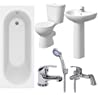 Plumbworld Bathroom Suite 1600mm White Straight Bath Toilet WC Basin Sink Tap Shower Mixer