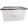 Set of 3 Clear Plastic Storage Box Boxes With Black Lids Home Office Stackable UK