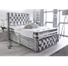 Sleep Factory's Silver Crushed Velvet Chesterfield 2 Drawer Divan Bed Set, Mattress & Headboard 5.0FT (King)